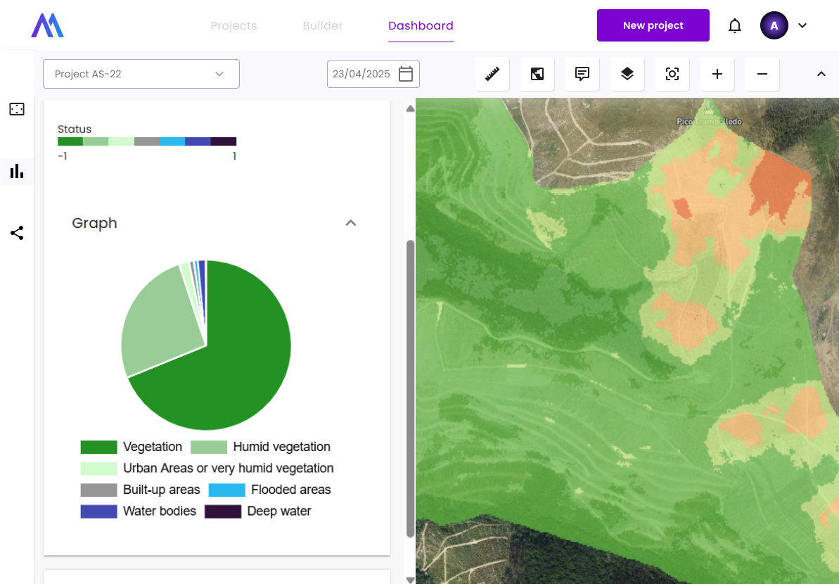 Manage and minimize the environmental impact of your projects with comprehensive insights. From monitoring vegetation health to controlling emissions, our solutions help you assess and mitigate the impact on natural resources. Plan reforestation efforts, understand environmental vulnerabilities, and take action to create a more sustainable future.