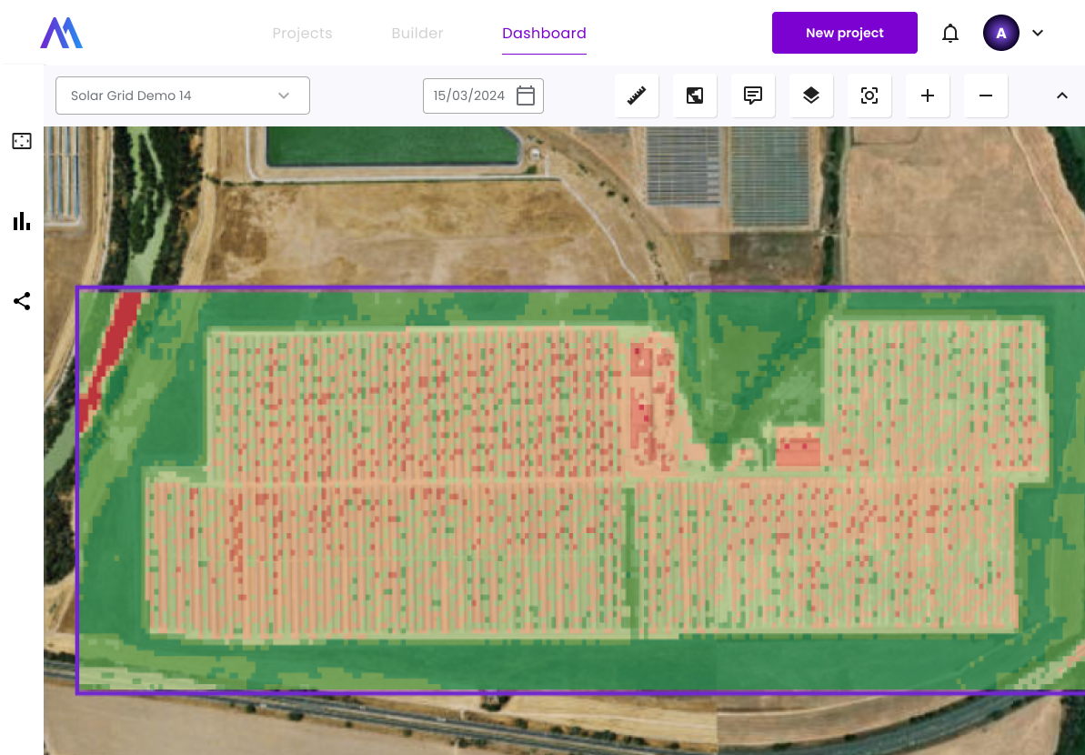 Managing solar plants and solar parks requires continuous oversight to prevent issues and optimize energy production. Imageryst provides a comprehensive solution to monitor the health and status of your renewable energy assets remotely. By analyzing key datasets such as vegetation encroachment, water bodies proximity, and the condition of solar panels, you can quickly identify potential risks and schedule necessary maintenance.